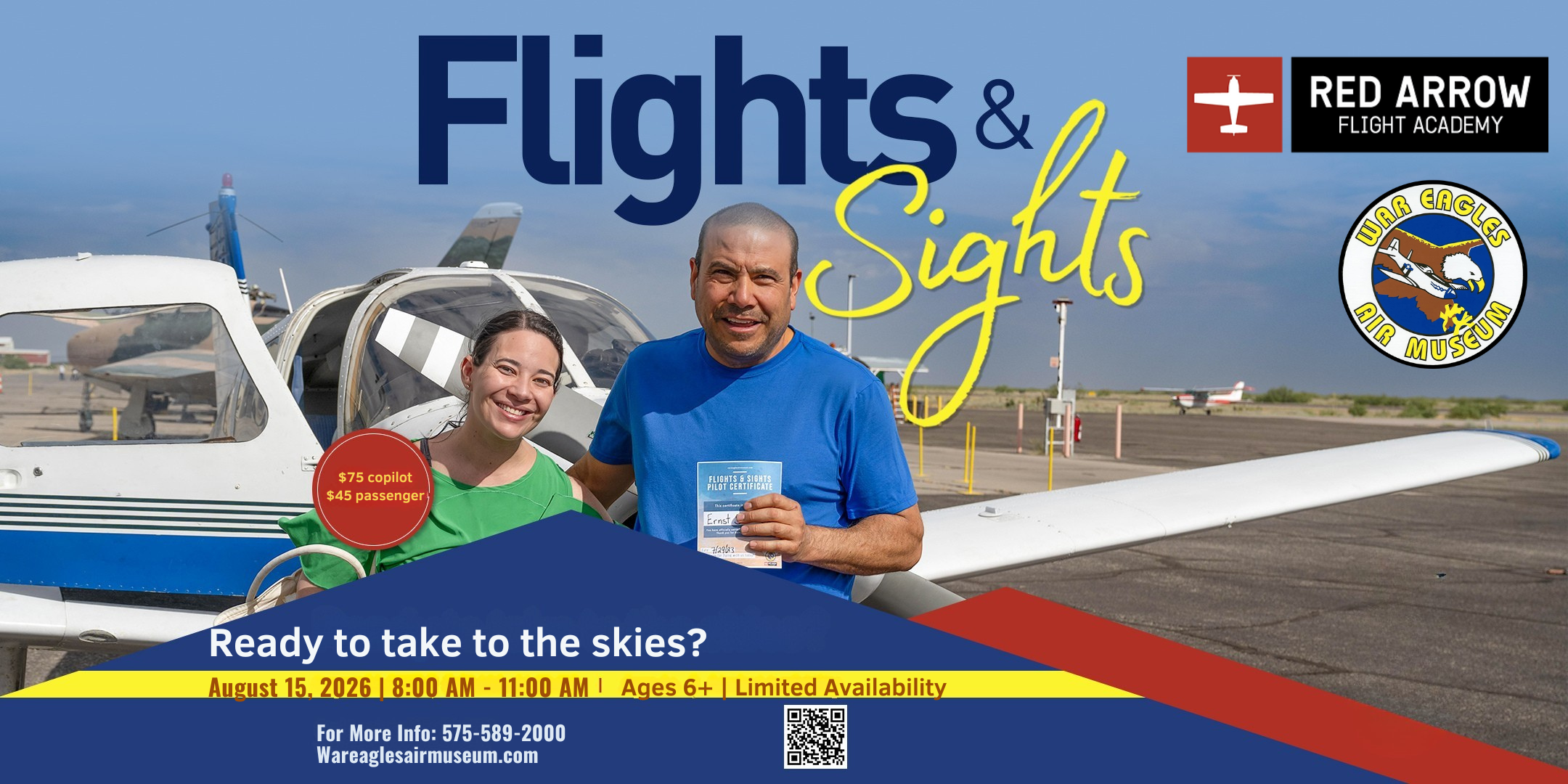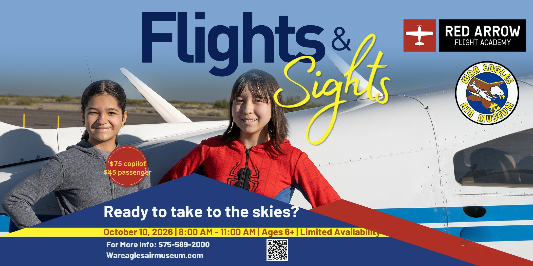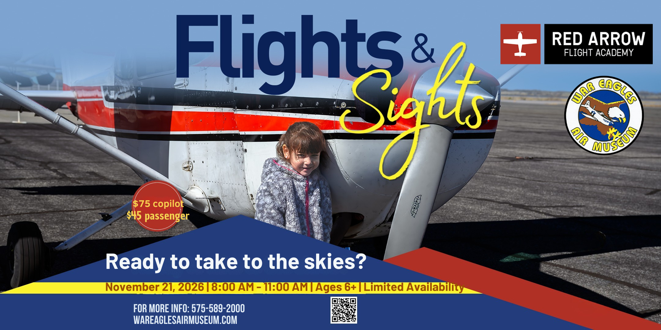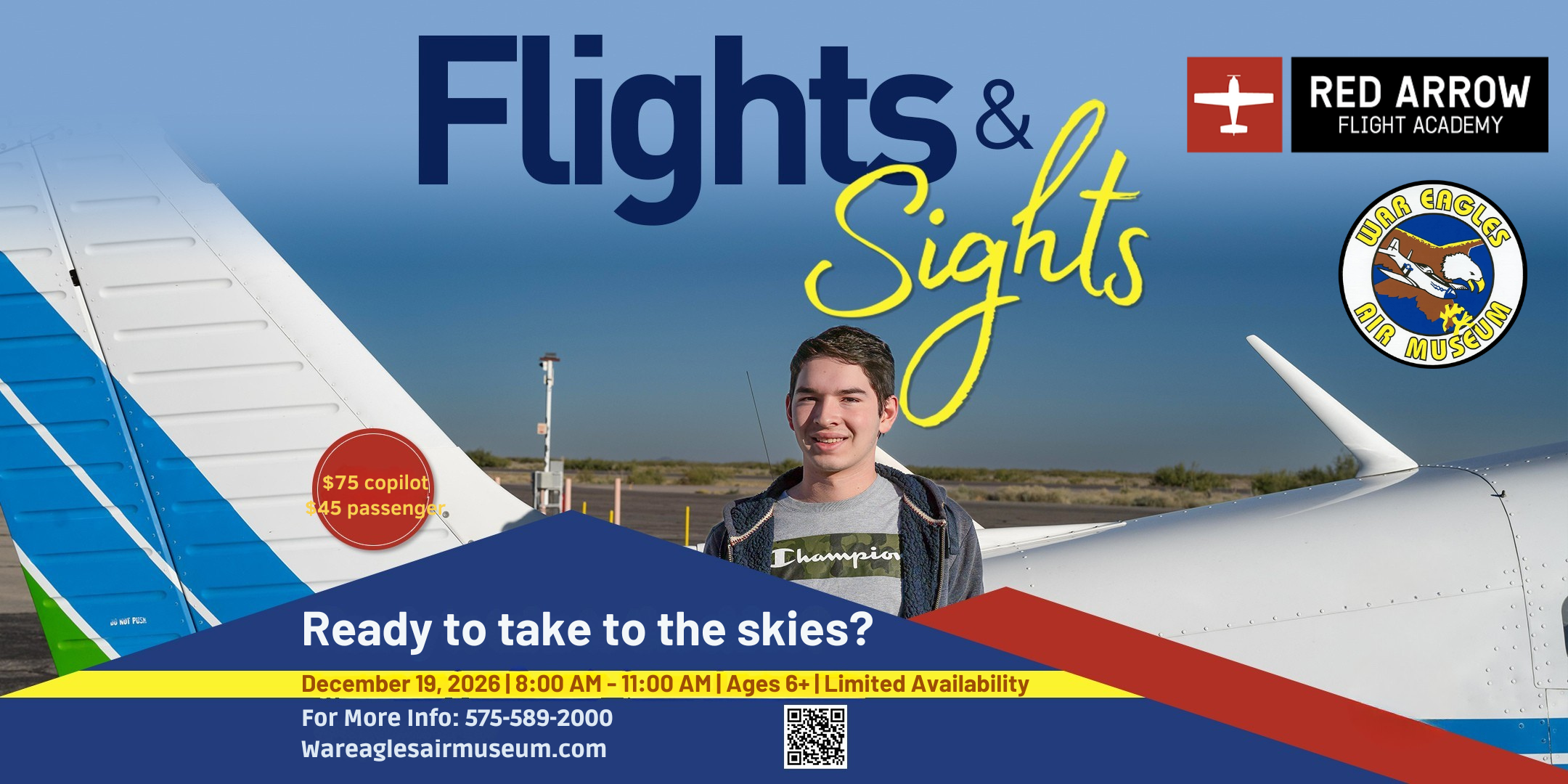 Eventsadmin2026-04-08T11:38:58-06:00 Flights and Sights – Jan 2026 Saturday 01/31/2026 | 8 am – 11 am Event Ended Flights and Sights – Feb 2026 Saturday 02/21/2026 | 8 am – 11 am Event Ended Flights and Sights – Mar 2026 Saturday 03/21/2026 | 8 am – 11 am Event Ended Aviation Summer Camp – Jun 2026 06/22/2026 – 06/26/2026 9 am – 3 pm Enroll Today Flights and Sights – May 2026 Saturday 05/09/2026 | 8 am – 11 am Buy Tickets Flights and Sights – Jun 2026 Saturday 06/20/2026 | 8 am – 11 am Buy Tickets Flights and Sights – Jul 2026 Saturday 07/18/2026 | 8 am – 11 am Buy Tickets Flights and Sights – Aug 2026 Saturday 08/15/2026 | 8 am – 11 am Buy Tickets Flights and Sights – Sep 2026 Saturday 09/19/2026 | 8 am – 11 am Buy Tickets Flights and Sights – Oct 2026 Saturday 10/10/2026 | 8 am – 11 am Buy Tickets Flights and Sights – Nov 2026 Saturday 11/21/2026 | 8 am – 11 am Buy Tickets Flights and Sights – Dec 2026 Saturday 12/19/2026 | 8 am – 11 am Buy Tickets